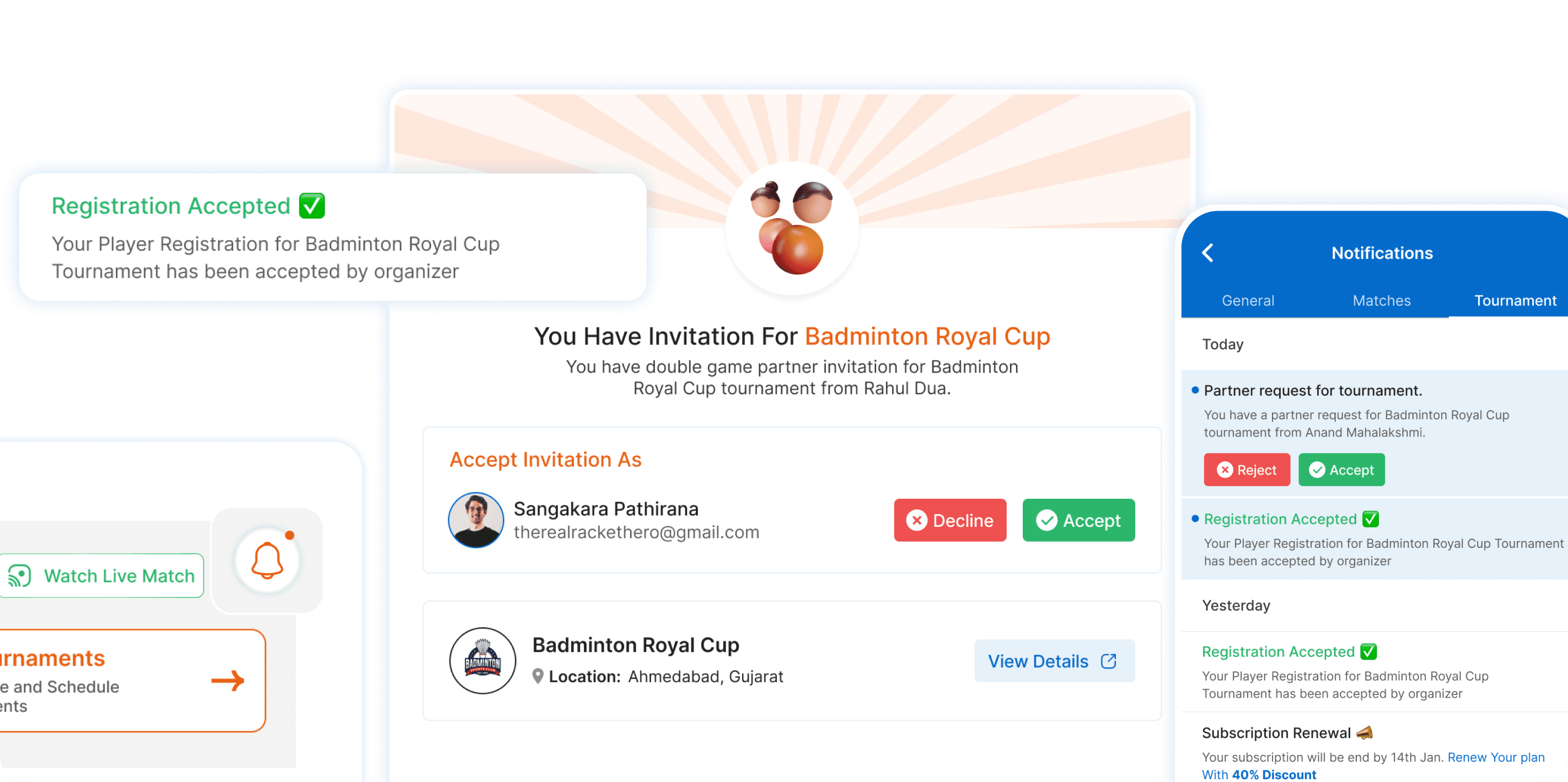 Review registrations effortlessly, invite and add players, manage their scores seamlessly, and accept or reject entries to build the ideal lineup smoothly and efficiently.